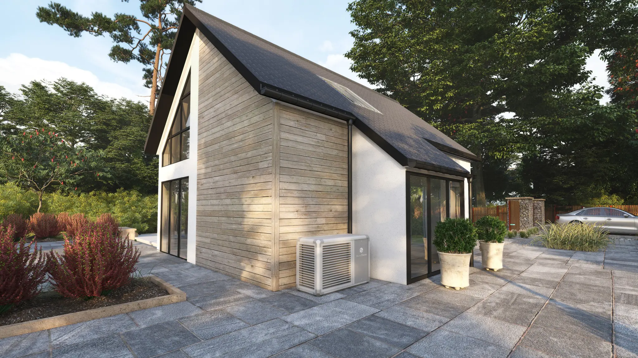 Bygget af aluminiumsprofiler og paneler, varmepumpen modstår vejrlig og korrosion på lang sigt.