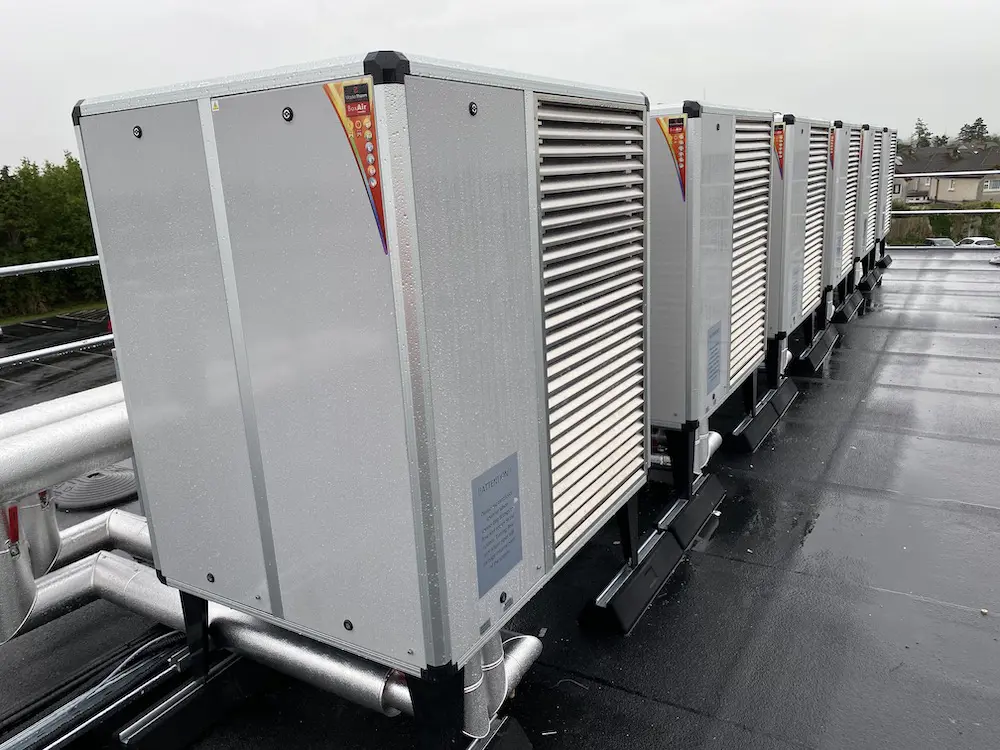 BoxAir 90 IP oferuje moc wyjściową do 50 kW, co czyni go najmocniejszą jednostką powietrze-woda w ofercie Master Therm. (BoxAir 60 IP z mocą 35 kW.)